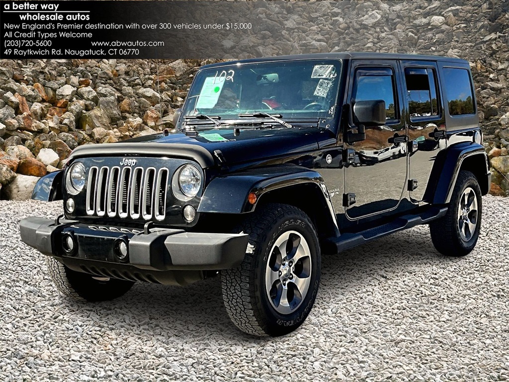 $14,999, Black Clear Coat, 88,216 mi, Black Clearcoat 2014 Jeep Wrangler Unlimited Sport 4WD 6-Speed Manual 3.6L V6 24V VVT CREDIT ISSUES? WE CAN HELP!! **203-888-2000**,ACCIDENT FREE CARFAX REPORT,SERVICE HISTORY AVAILABLE,ALL WHEEL DRIVE,AVAILABLE EXTENDED WARRANTY,Wrangler Unlimited Sport,3.6L V6 24V VVT,4X4,4-Wheel Disc Brakes,ABS,Brake assist,Dual front impact airbags,Electronic Stability Control,Front anti-roll bar,Quick Order Package 23C,Steering wheel mounted audio